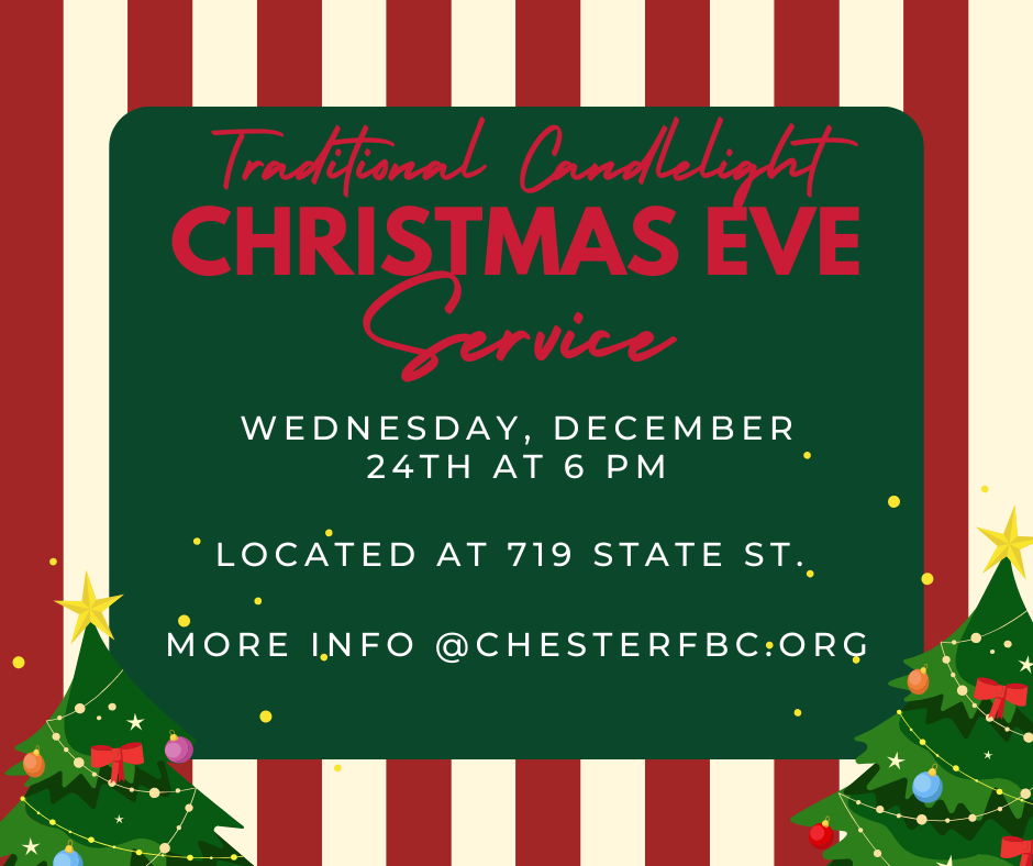Wednesday, December 24th 6:00 PM Chester First Baptist Church — 719 State St., Chester, IL